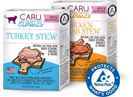 Caru卡鲁餐盒的动物蛋白含量高、低碳水化合物,不含人造色素、香料和防腐剂。其营养价值,满足美国饲料管理协会(AAFCO)的全猫粮标准。